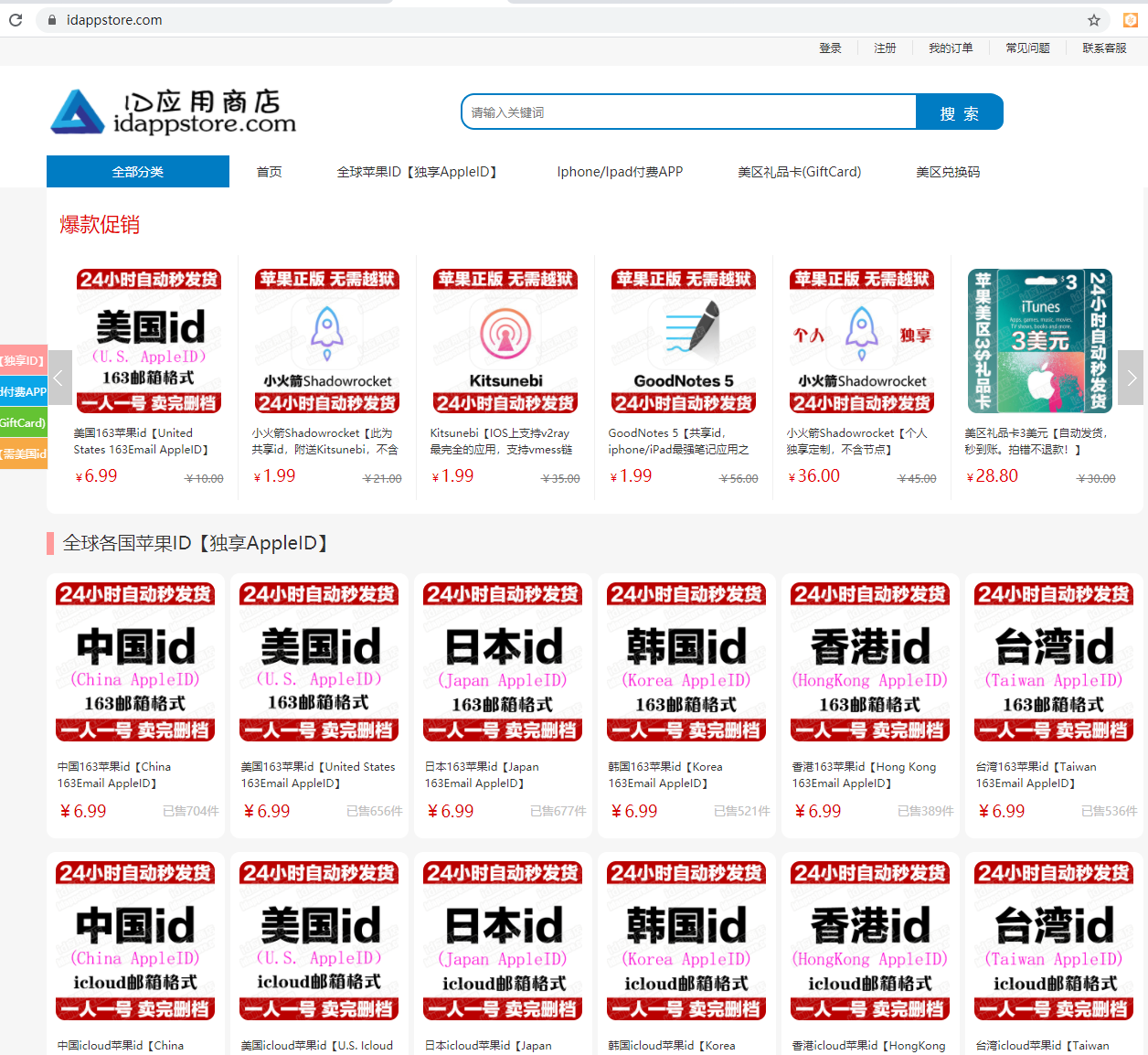 ID应用商店 上线,出售全球各地区苹果id账号和提供付费APP下载!